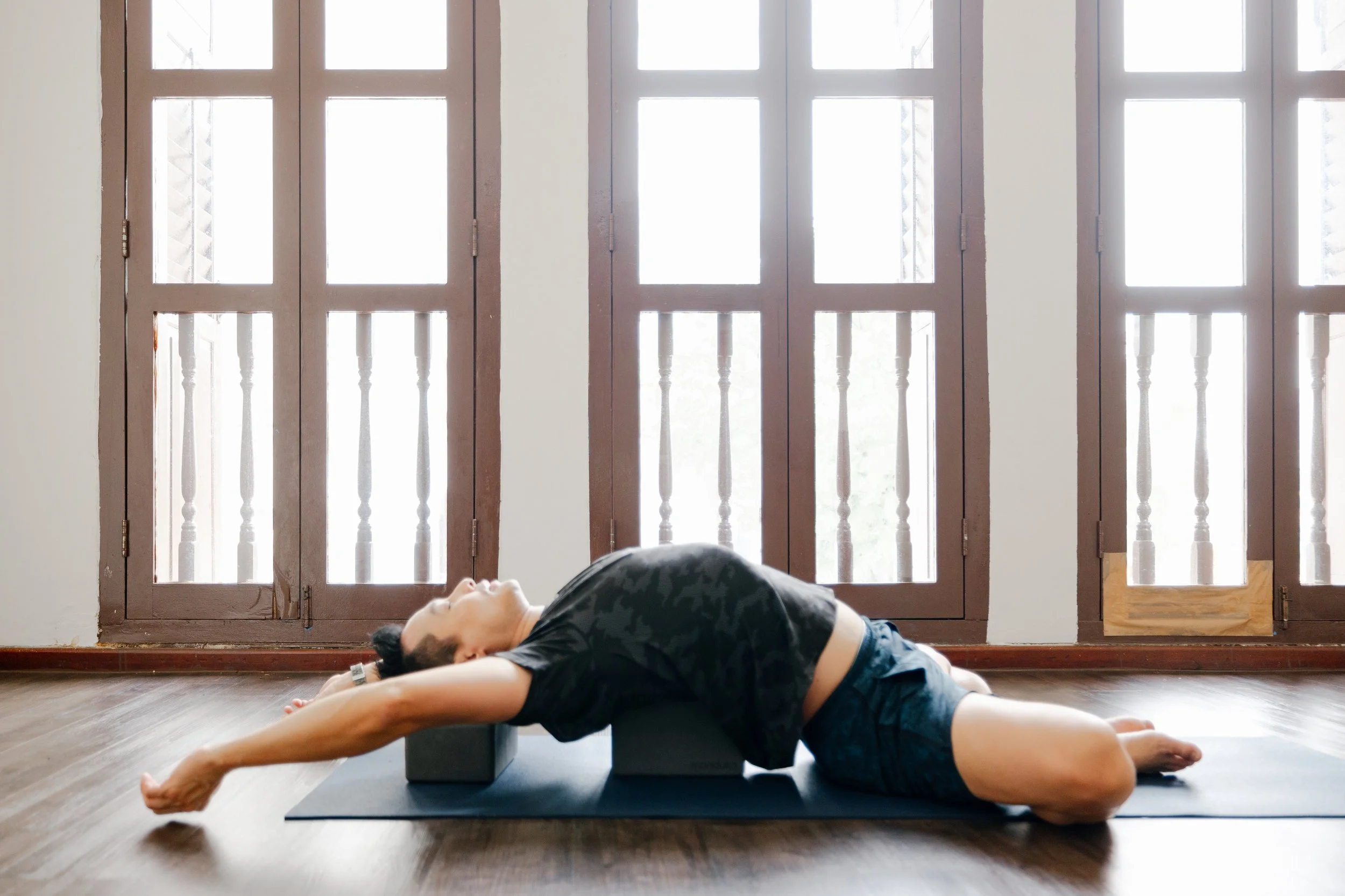 The poses in a Yin yoga class target your deep connective tissues, like your fascia, ligaments, joints, and bones. It’s slower and more meditative, giving one space to turn inward and tune into both the mind and the physical sensations of the body. Because you’re holding poses for a longer period of time than you would in other traditional types of yoga, yin yoga allows you stretch and lengthen those rarely-used tissues while also teaching you how to breathe through discomfort and sit with your thoughts.